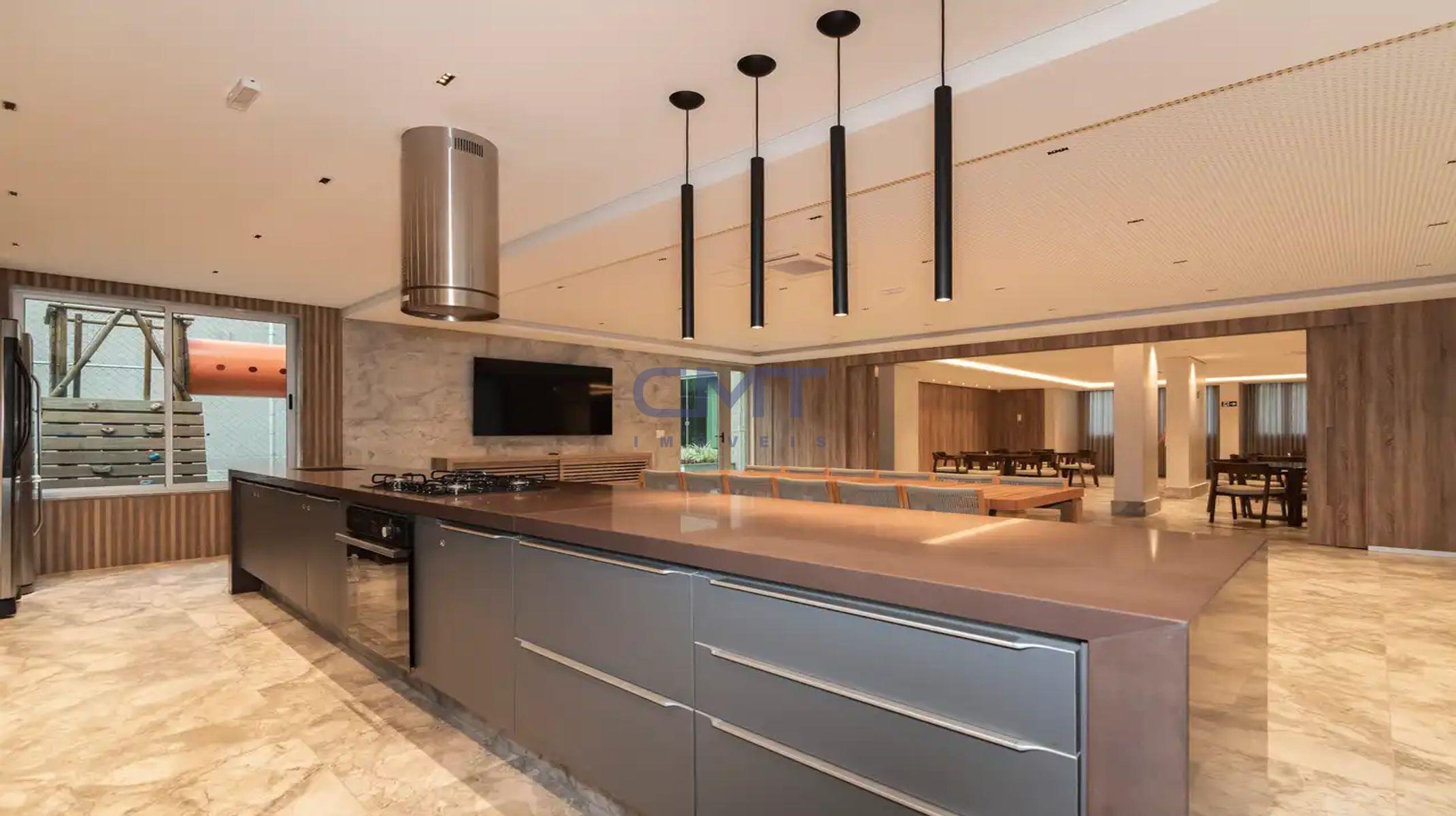 O apartamento possui 281,56 m² aprovados, sendo 197,15 m² internos + 84,41 m² de cozinha gourmet integrada à varanda, totalmente equipada, oferecendo automação, sistema acústico, espaço para adega e ar-condicionado.